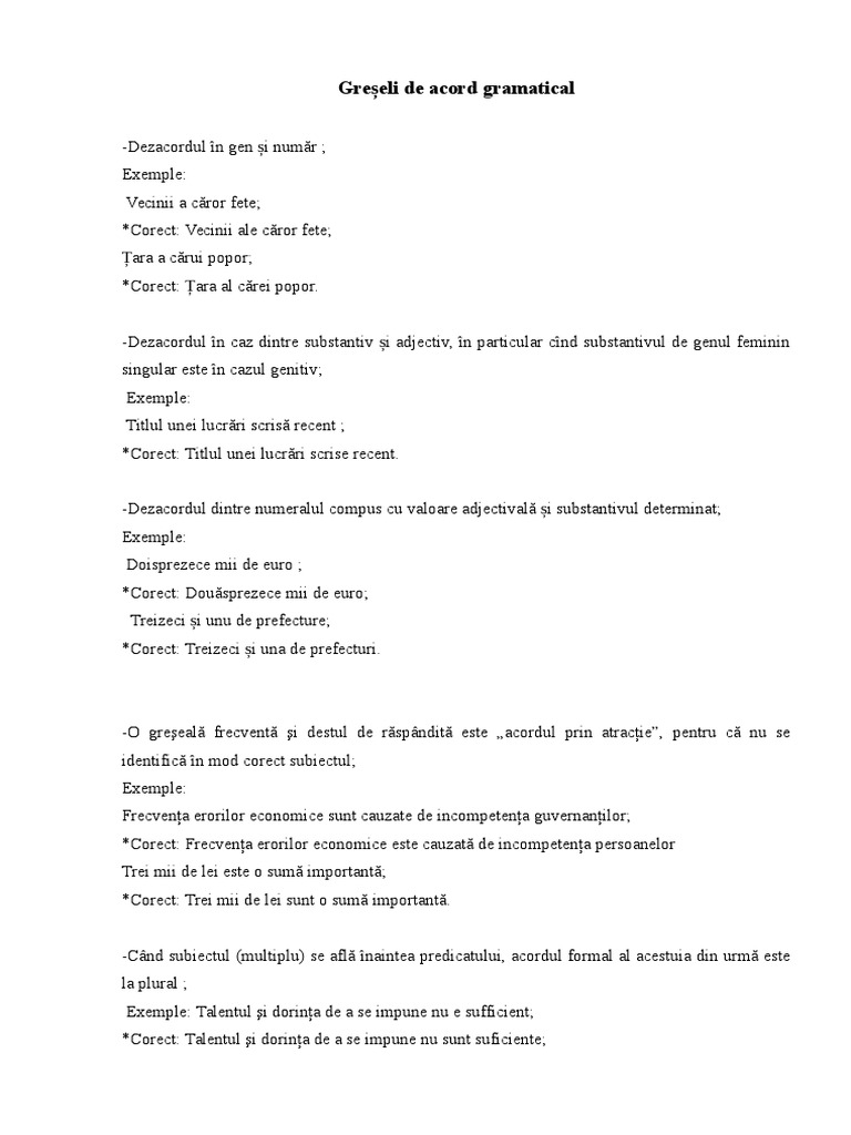 Greșeli De Acord Gramatical