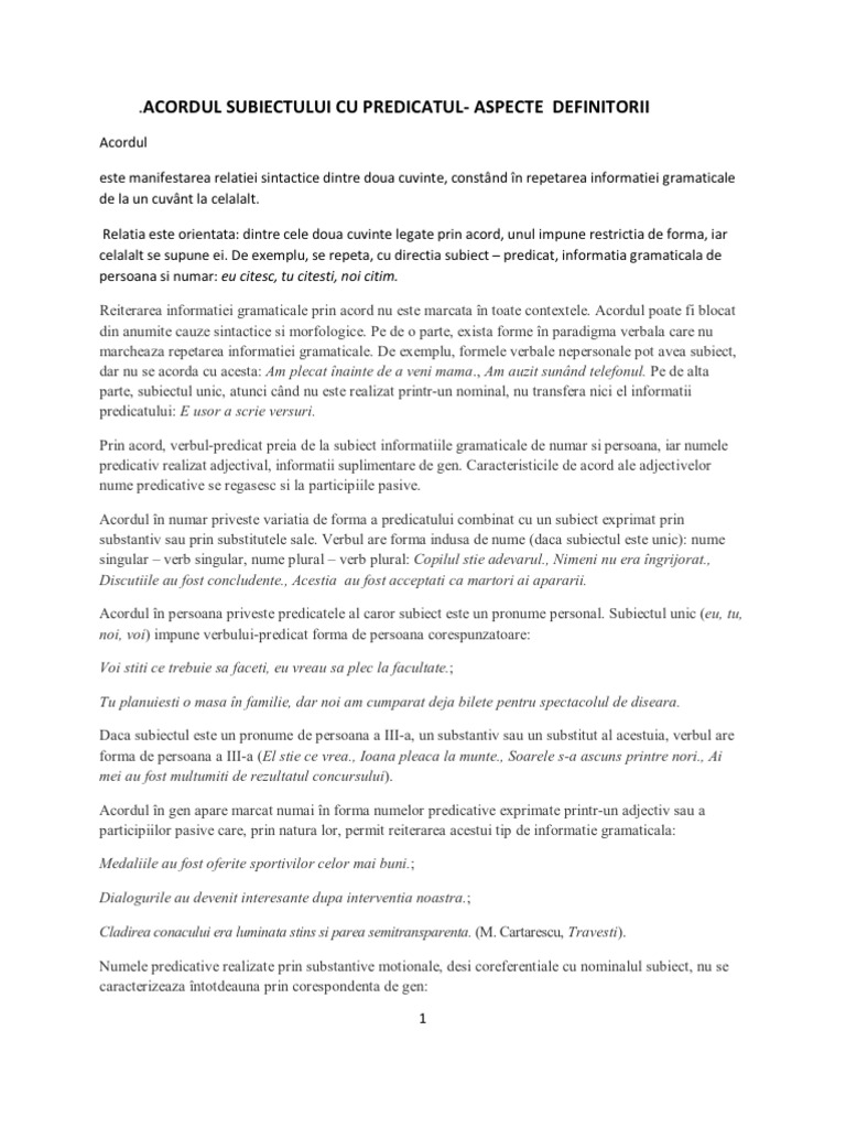 Doc Acordul Subiectului Cu Predicatul Aspecte Definitorii Molly 5 Academia Edu