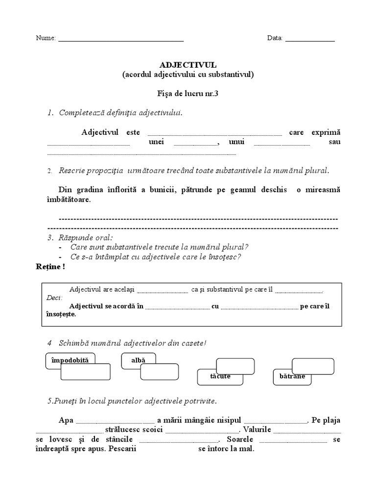 Adjectivul Acordul Adjectivului Cu Substantivul
