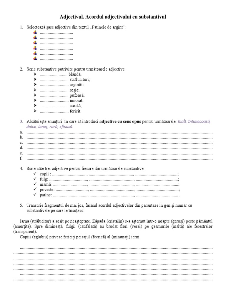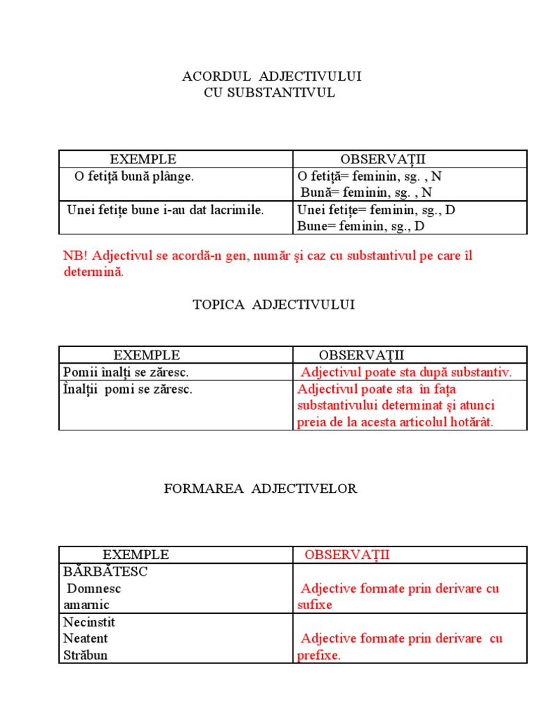 Acordul Adjectivului Cu Substantivul Exemple E Pedia