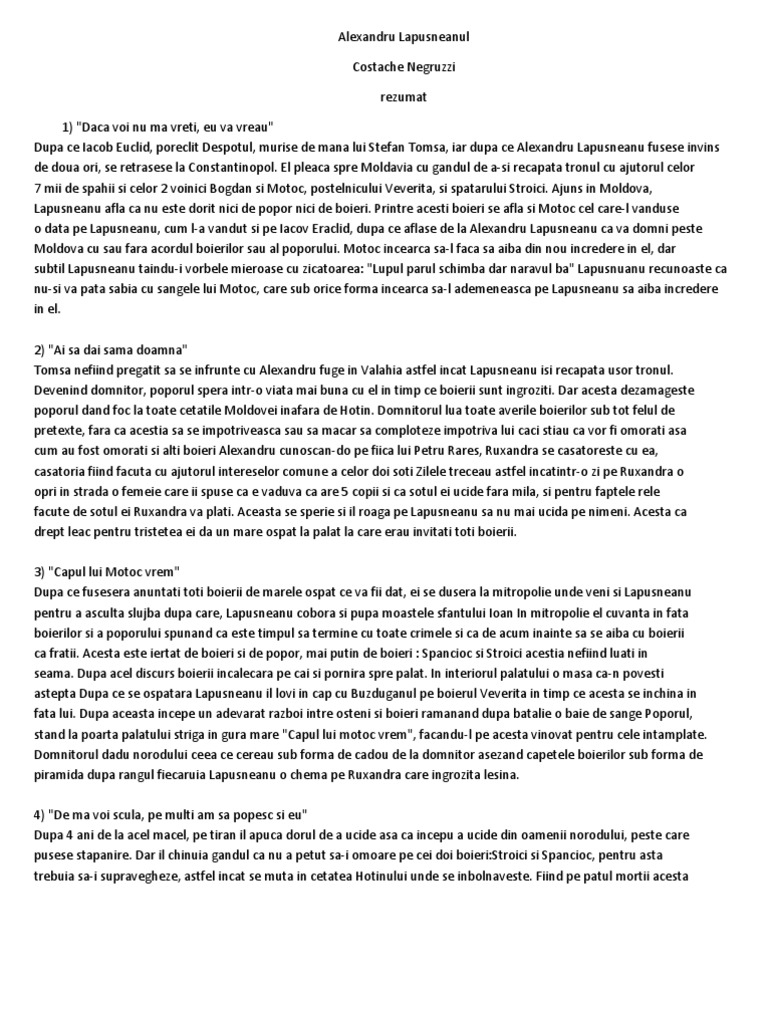 Alexandru Lapusneanul Rezumat De Costache Negruzzi