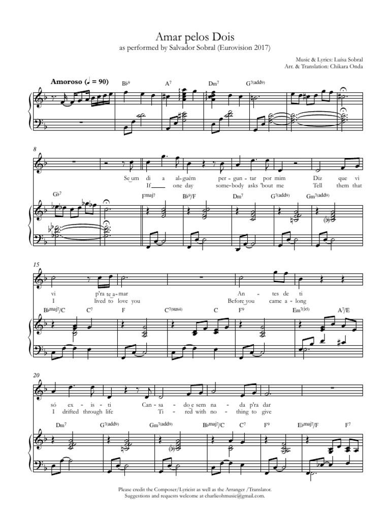 Amar Pelos Dois English Piano Sheet Music W Chords Salvador Sobral Sheet Music Music Piano Sheet