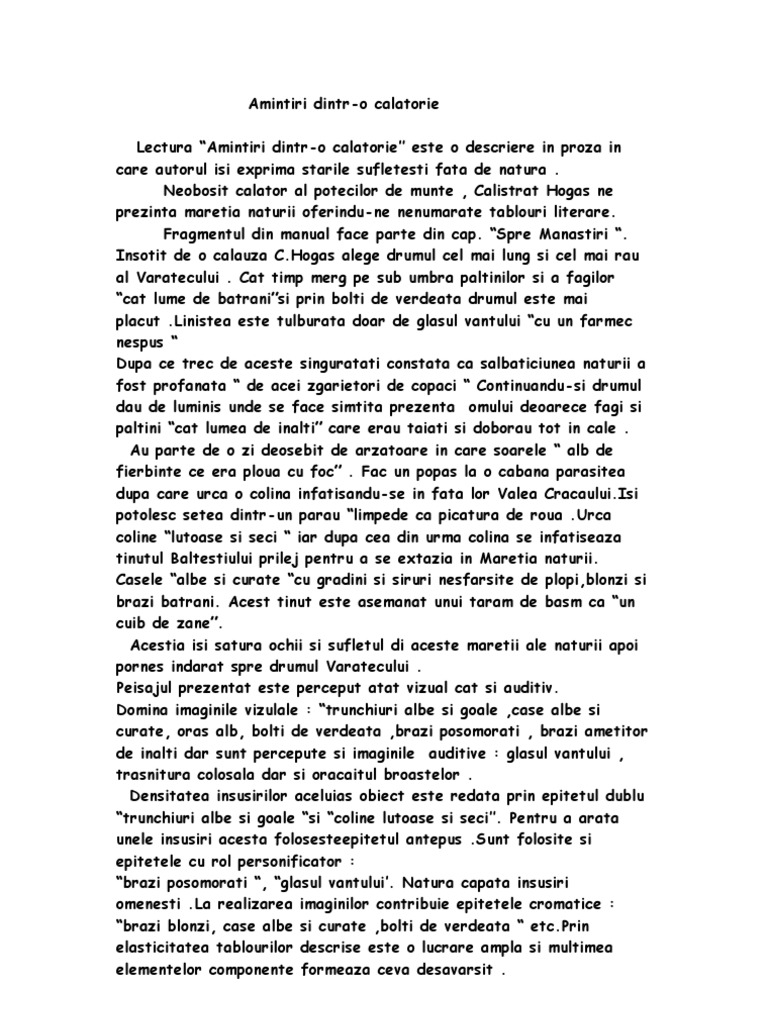 Calistrat Hogas Amintiri Dintr O Calatorie Www E Referat