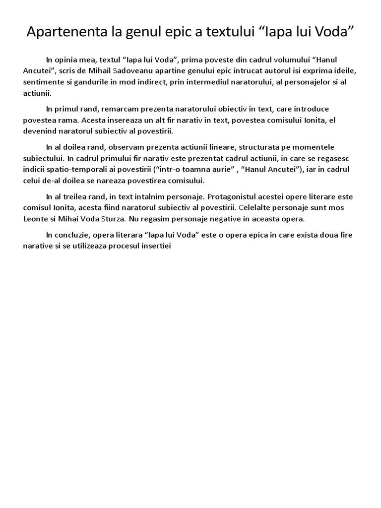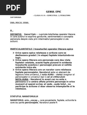 Model De Argumentare A Apartenenţei Unui Text La Genul Epic