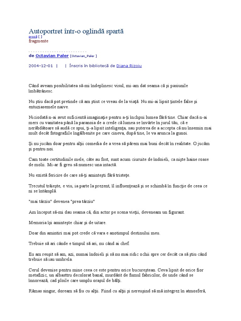 Autoportret Intr O Oglinda Sparta Pdf