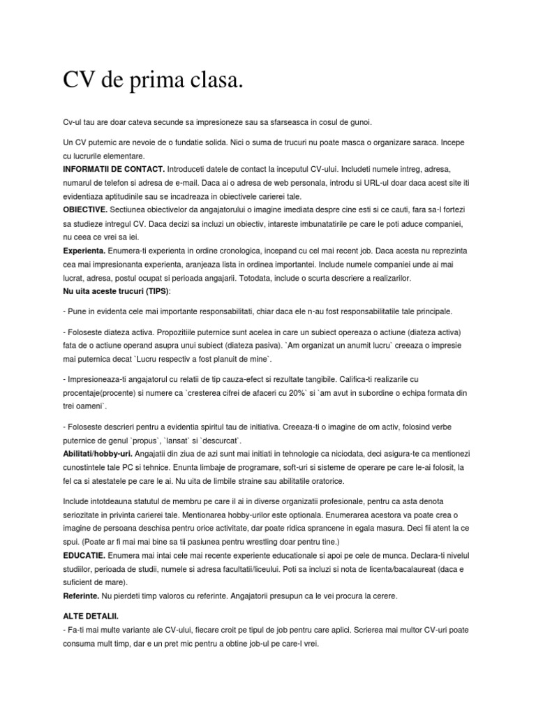 Sfaturi Pt Cv