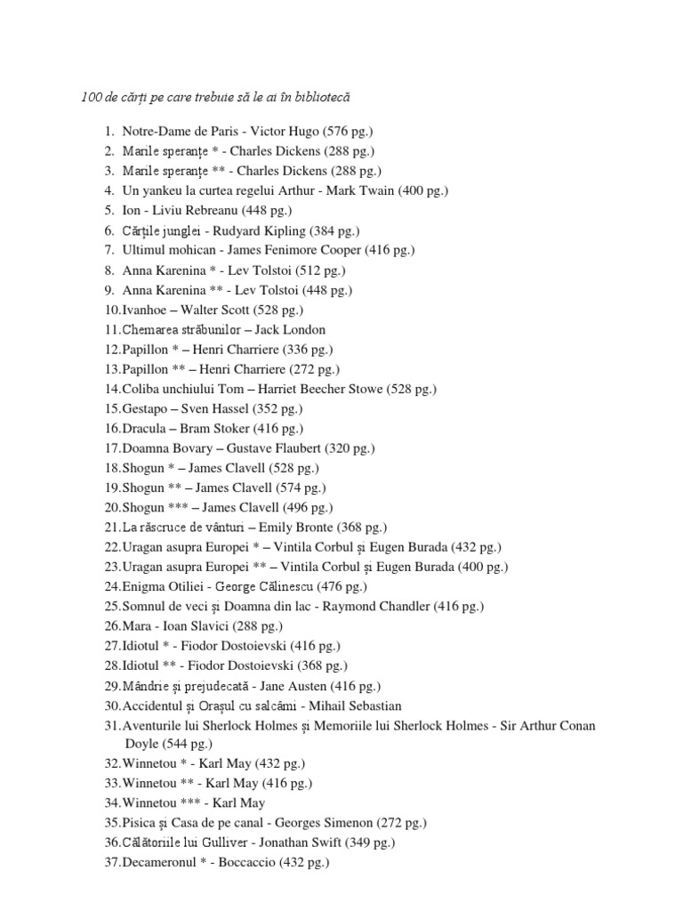 100 De Cărți Pe Care Trebuie Să Le Ai In Bibliotecă Docx