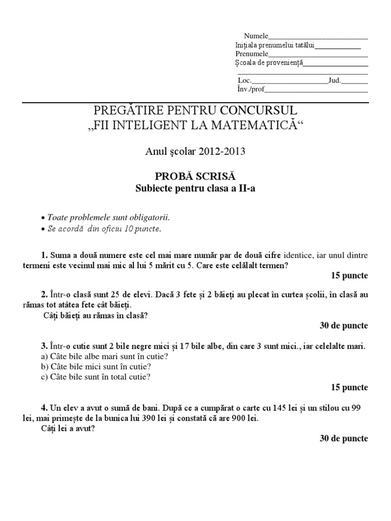 Modele Subiecte Concurs Fii Inteligent Clasa A Iii A Var 2