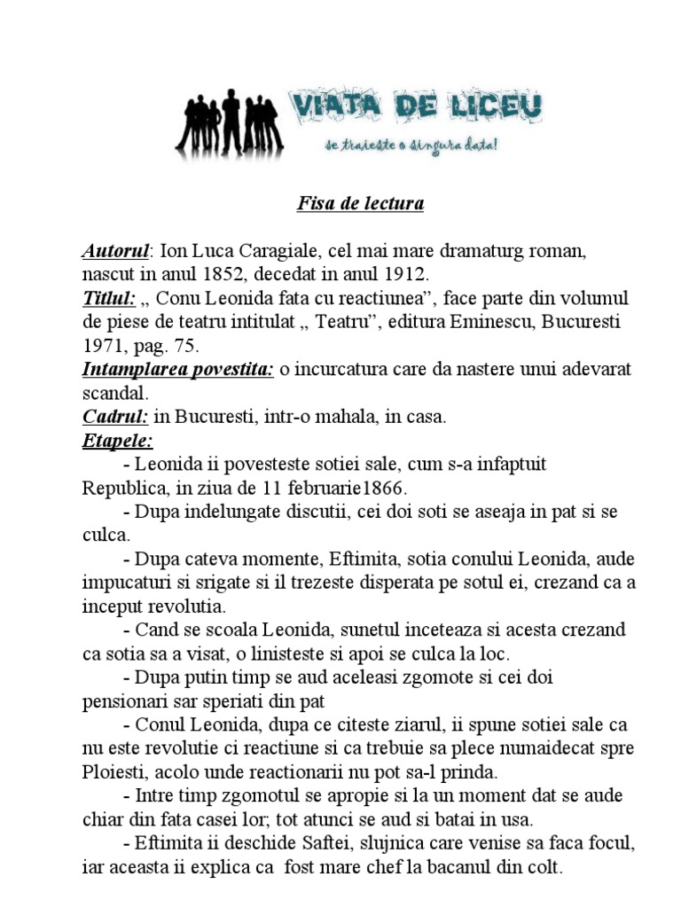 Fisa De Lectura Conu Leonida Fata Cu Reactiunea