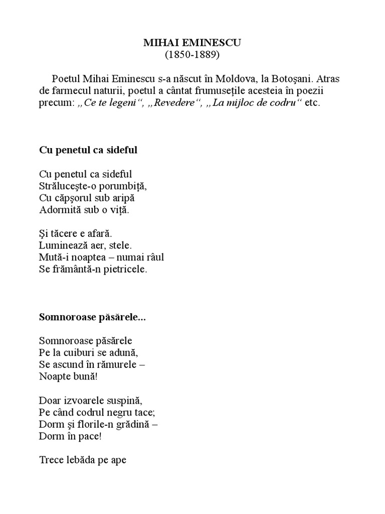 Poezii De Mihai Eminescu Cu Penetul Ca Sideful Wattpad