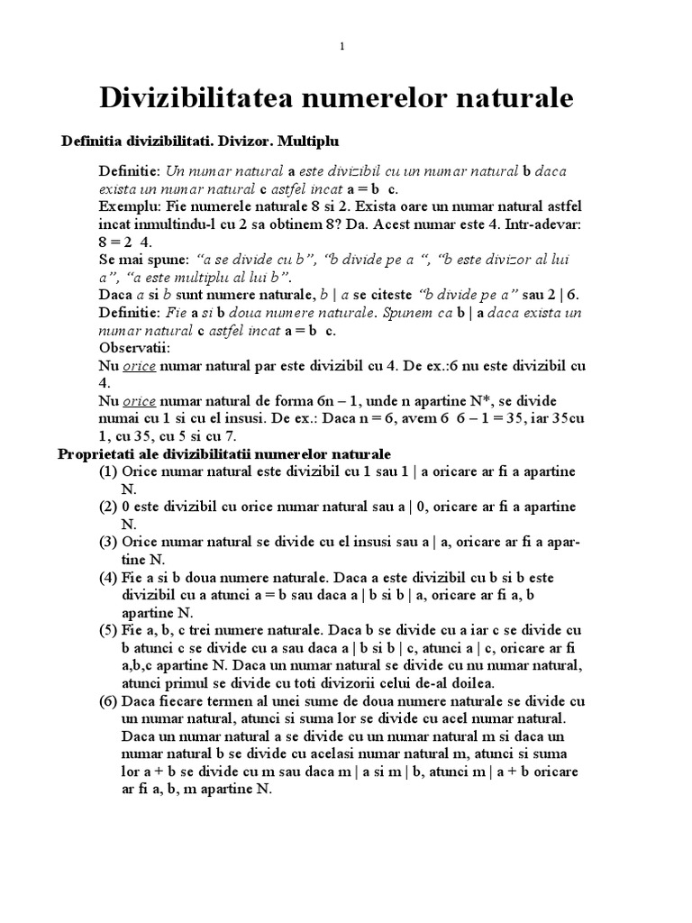 Divizibilitatea Numerelor Naturale