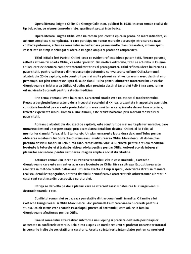 Doc Călinescu Enigma Otiliei Temă Si Viziu Ne Andreea Sb Academia Edu