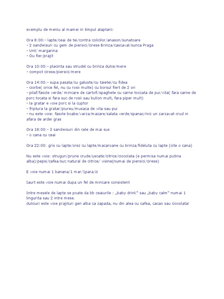 Exemple De Meniuri In Alaptare
