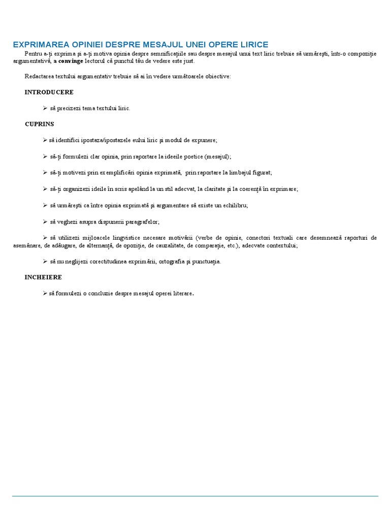 Exprimarea Opiniei Despre Mesajul Unei Opere Lirice