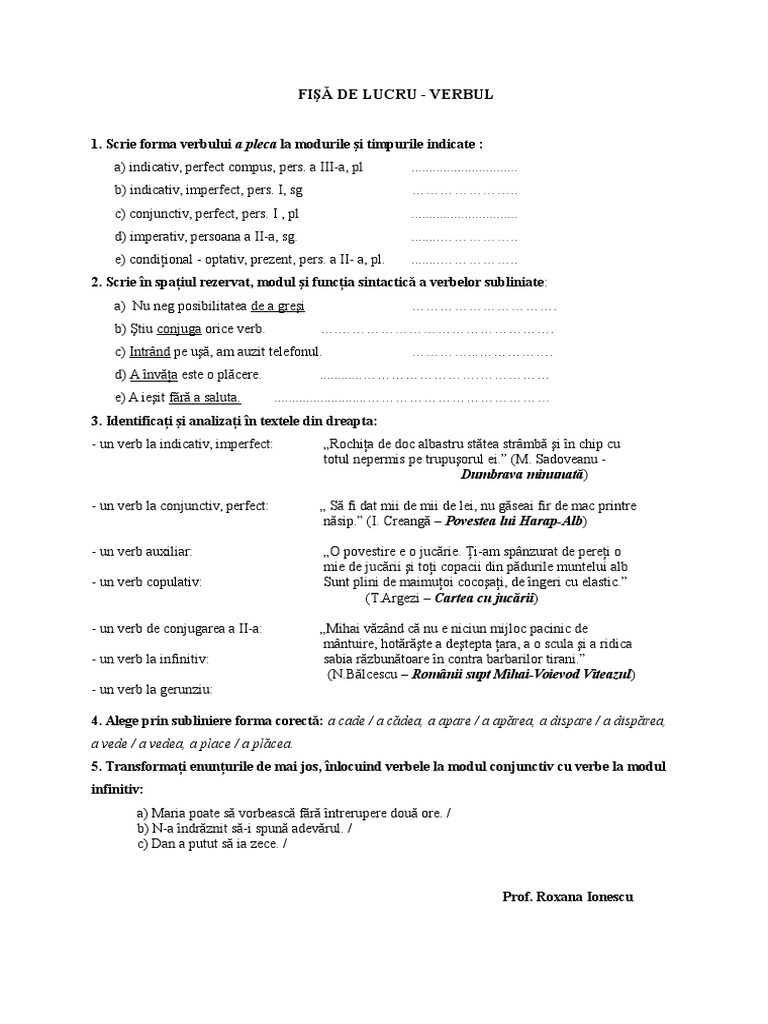 Fise De Lucru Limba Romana Clasa 3 Verbul