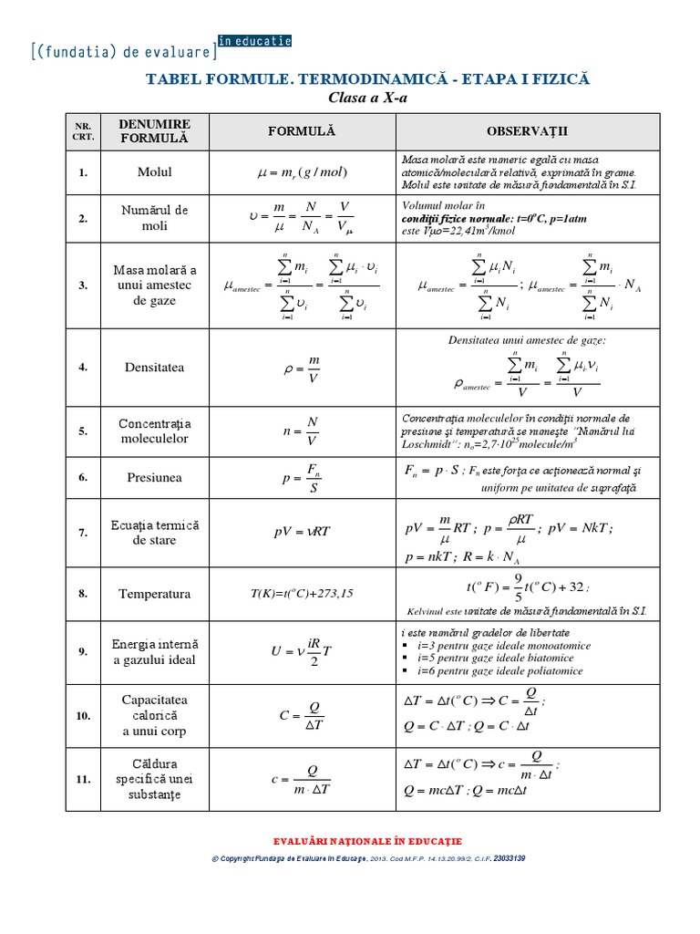 Tabel Formule Clasa A 10 A Fizica