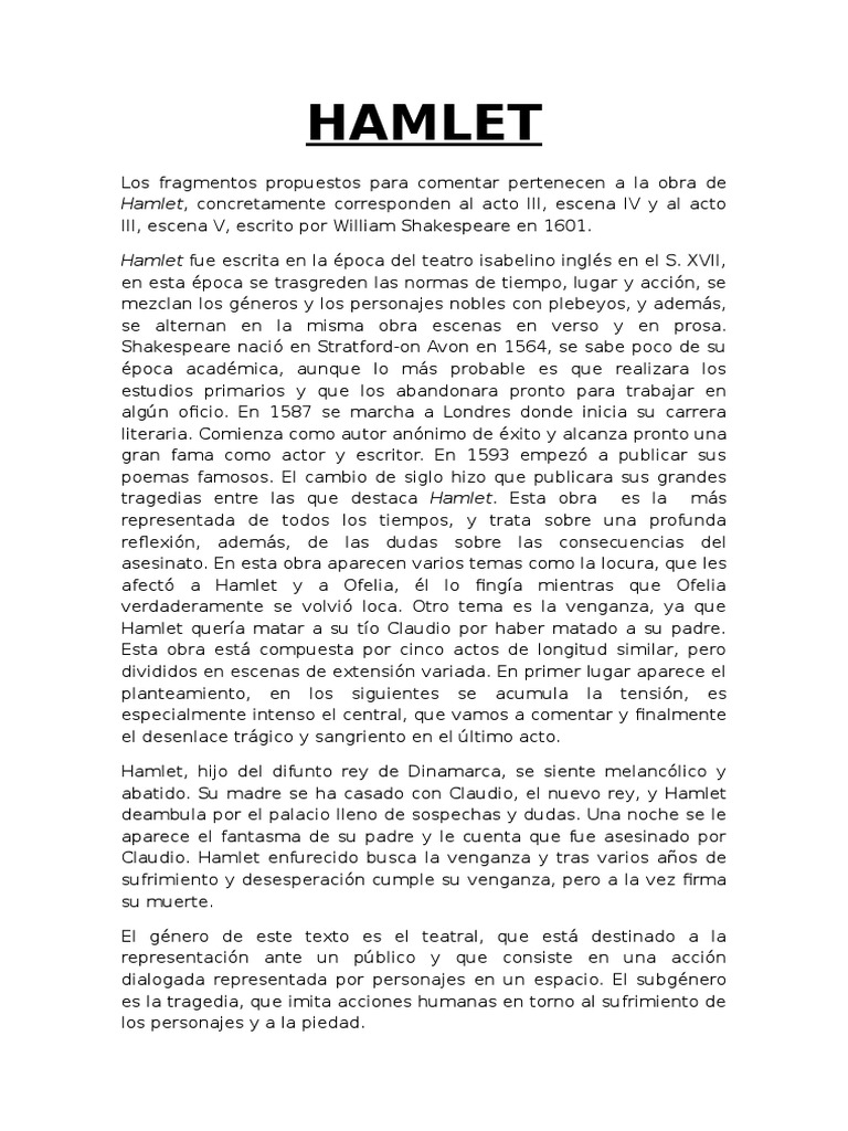 Comentario De Texto Nº 3 Hamlet