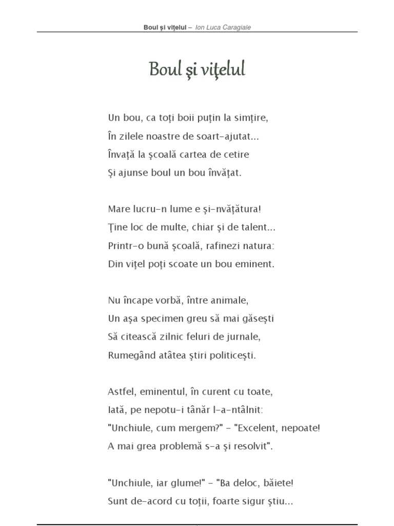 Boul Si Vitelul De Grigore Alexandrescu Argumentare Famouswhy Ro