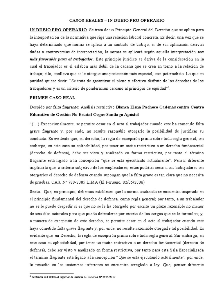 Información detallada sobre ejemplo de principio in dubio pro operario podemos compartir.