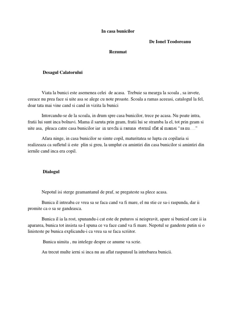 Vă Rog Rezumat La Ionel Teodoreanu Bunicii Brainly Ro