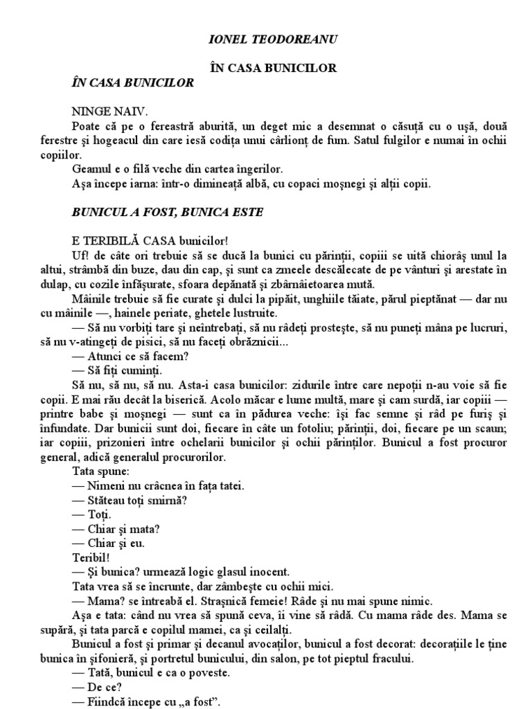Povestiri Pe Scurt De Lecturi școlare Bunicul A Fost Bunica Este