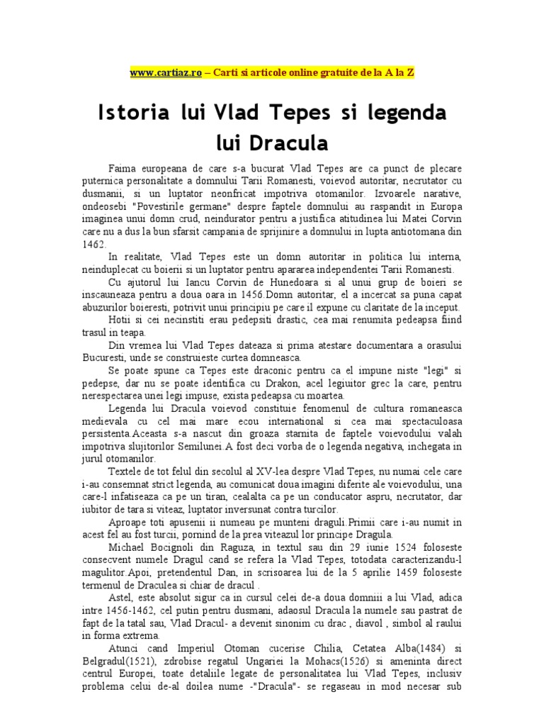 Referat Istoria Lui Vlad Tepes Si Legenda Lui Dracula Istoria Romanilor 1052