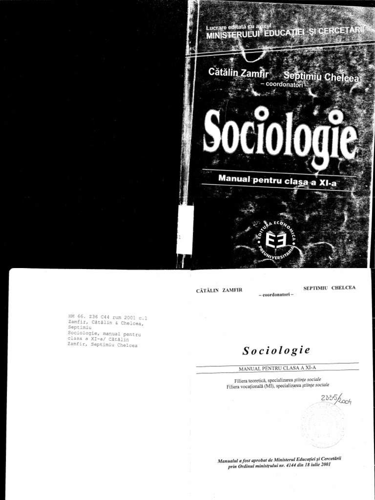 Sociologie Manual Pentru Clasa A Xi A Septimiu Chelcea Catalin Zamfir