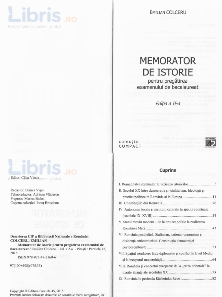 Memorator De Istorie Pentru Pregătirea Examenului De Bacalaureat Editura Paralela 45