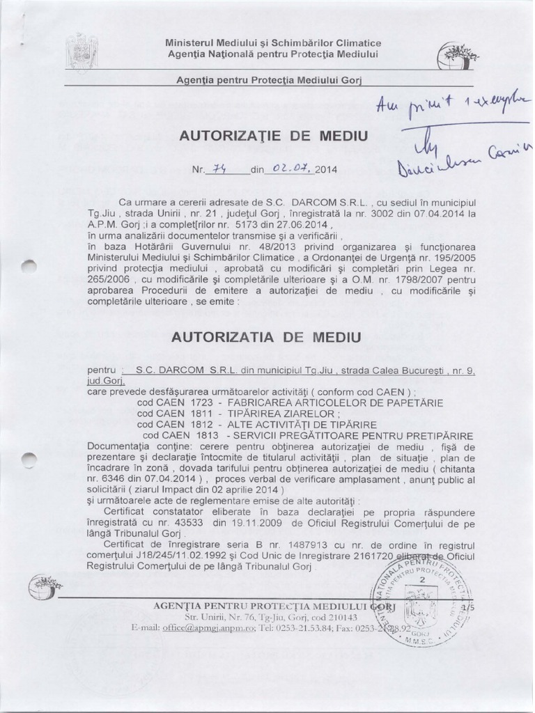 Autorizatie Caen 1813 Sc Darcom Srl Tipografie