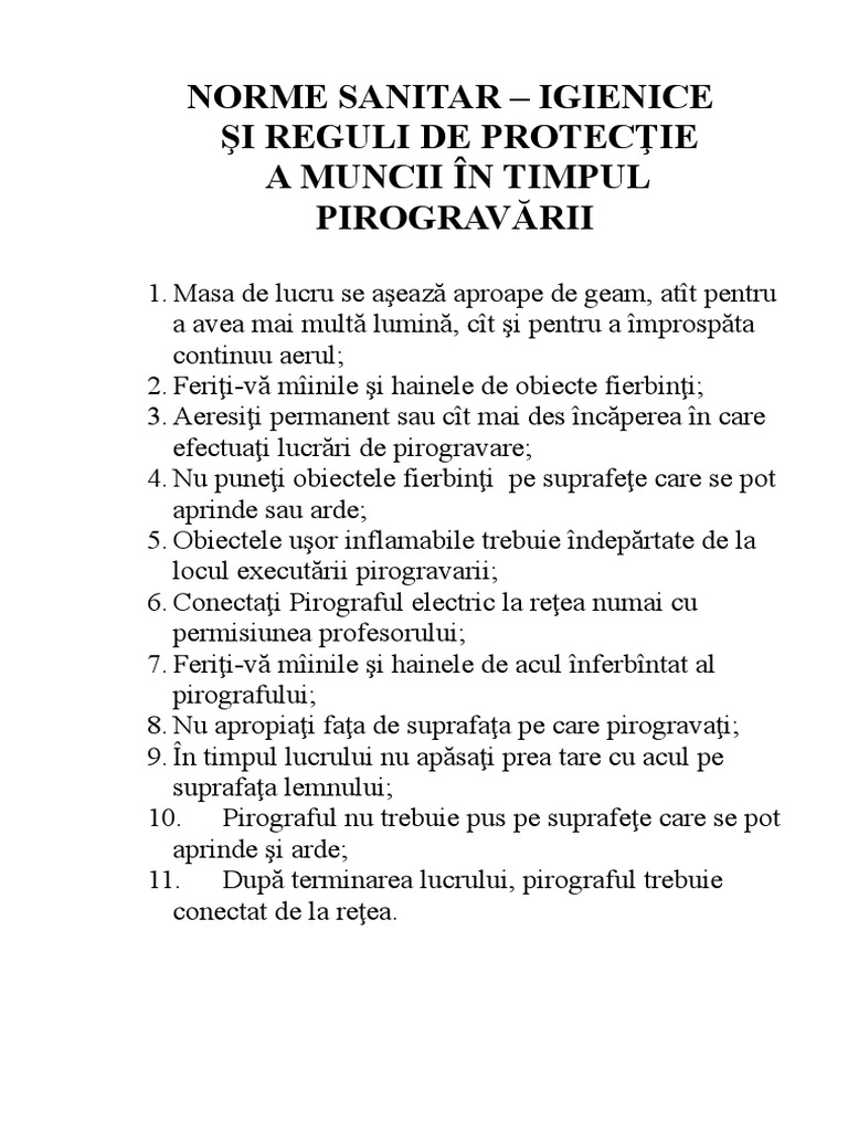Norme Sanitar Igienice Si Reguli De Protectie A Muncii In Timpul Pirogravarii
