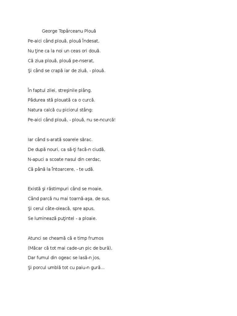 Exercitii Limbaromana Poezia Octombrie De George Toparceanu