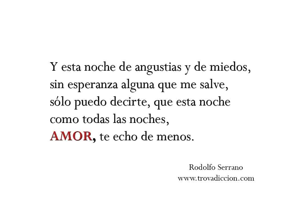 Poemas de amor te echo de menos. Reconozco que el acuerdo. Hoy no te pueden ver mis ojos pero mi corazón guarda tu sonrisa. Hoy un poema hoy me acorde de ti te hecho de menos hablado espero te guste y puedas compartir gracias. No es justo sentir ésta clase de amor pues sólo estoy sufriendo yo y tú no.