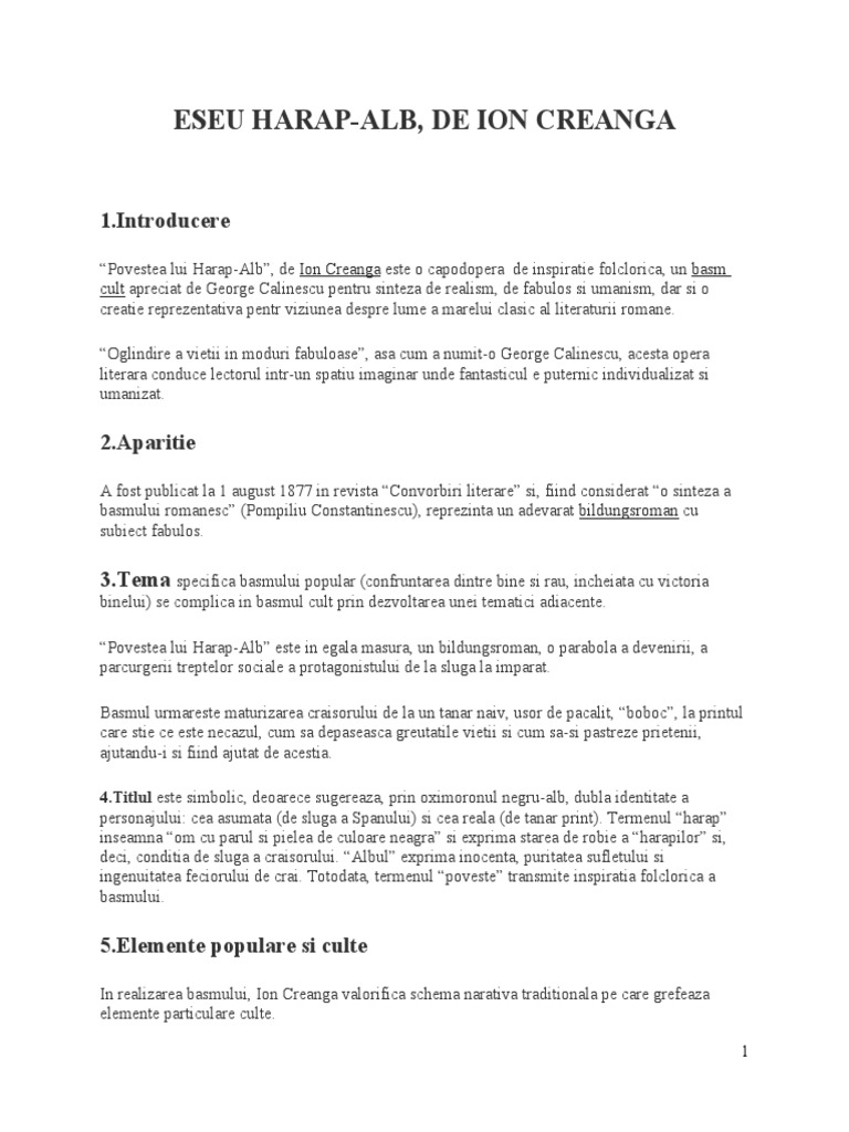 Eseu Povestea Lui Harap Alb Ion Creanga Docx
