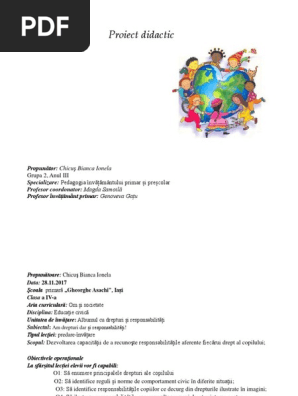Doc Proiect De Lectie Clasa A Iv A Educatie Civica Drepturile Copilului Vazute Prin Ochi De Copil Logan Rugina Academia Edu