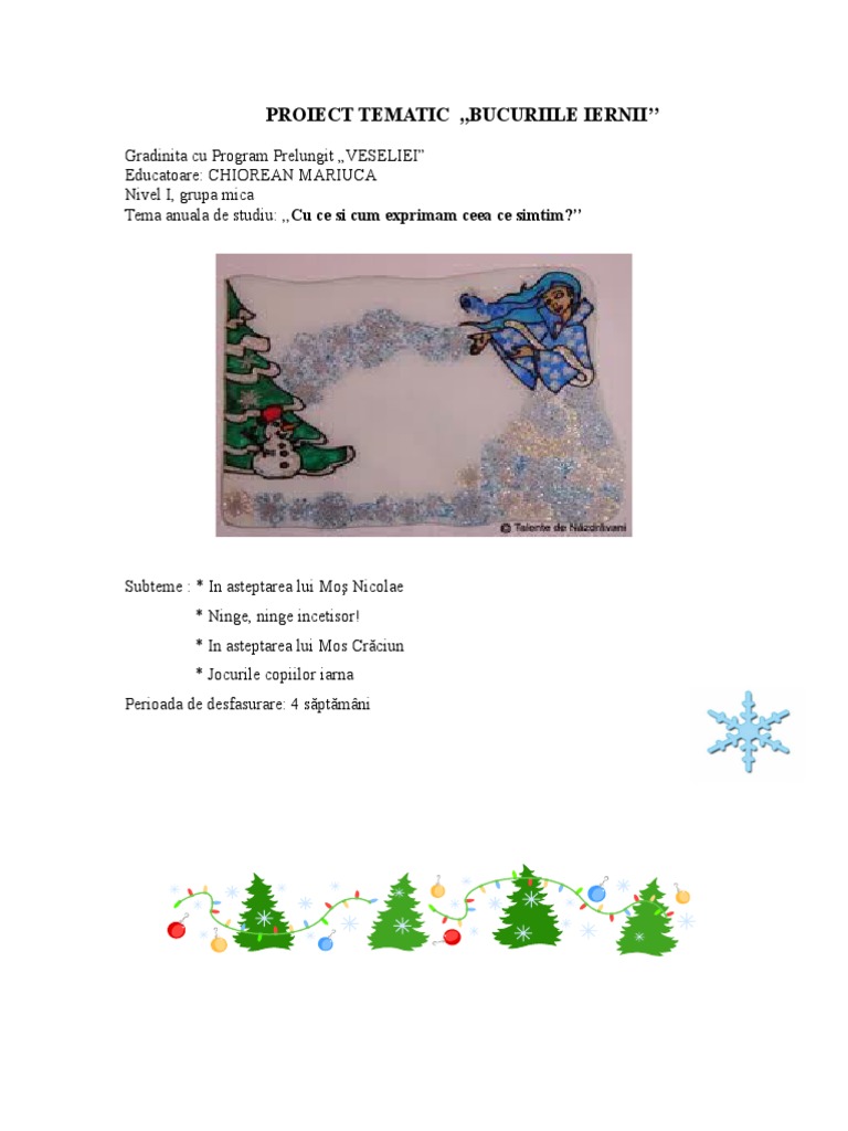 Proiect Tematic Bucuriile Iernii