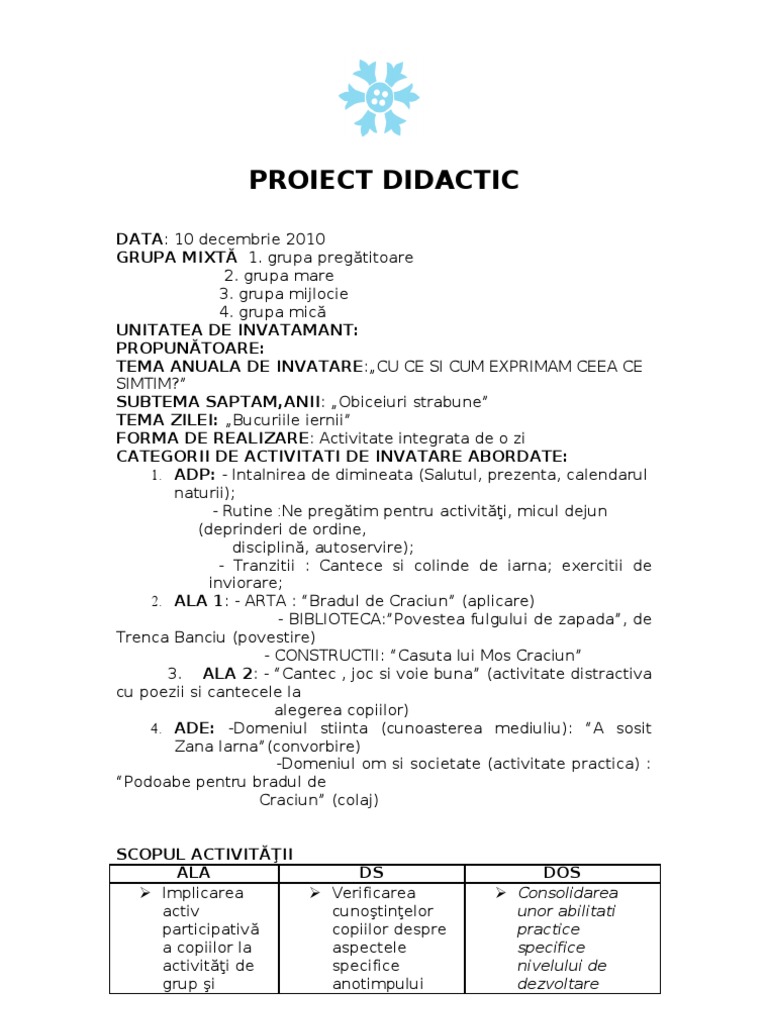Proiect Tematic Bucuriile Iernii 2016 2017