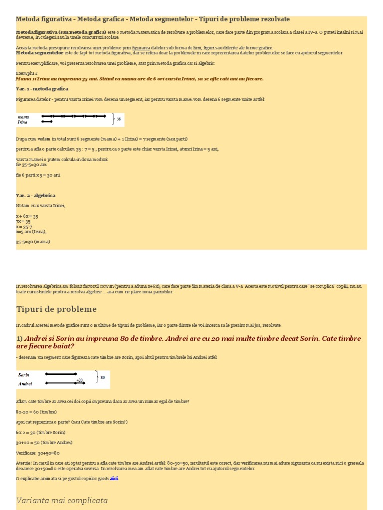 Proparinti Metoda Figurativa Metoda Grafica Metoda Segmentelor Tipuri De Probleme Rezolvate