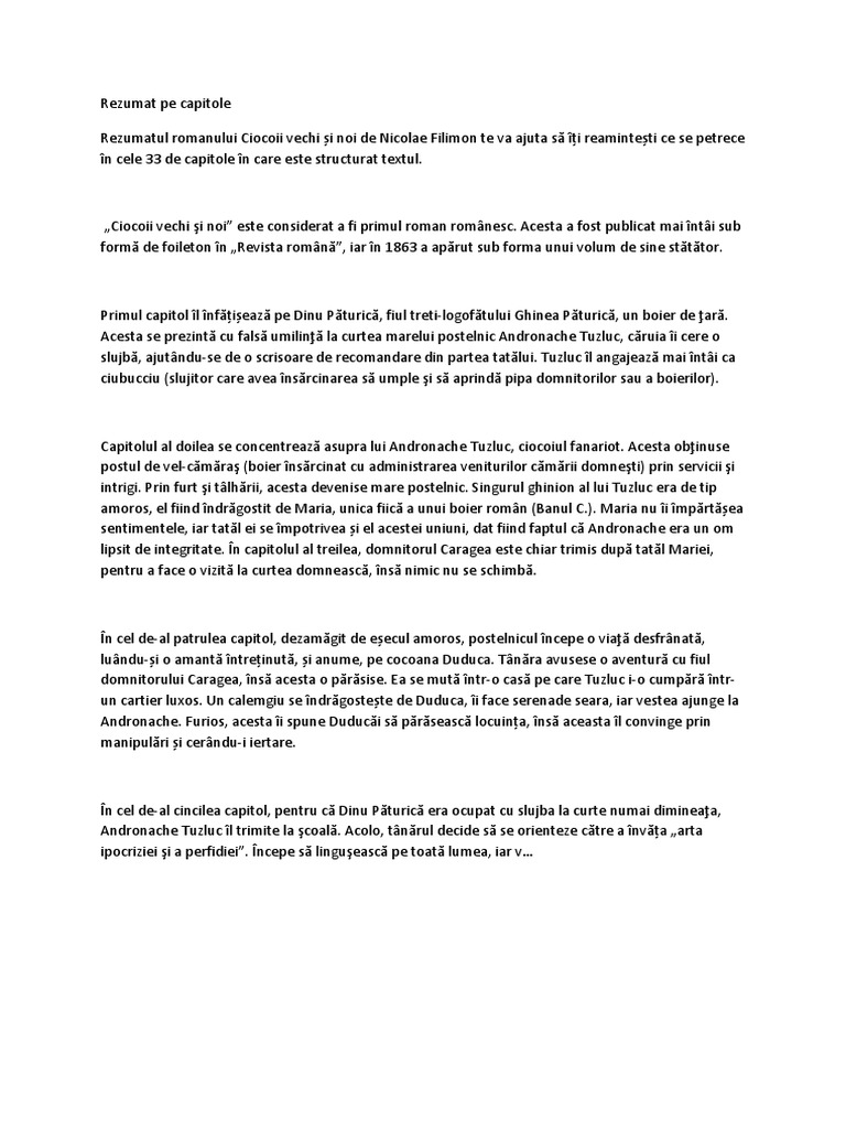 Ciocoii Vechi Si Noi Rezumat Pe Capitole