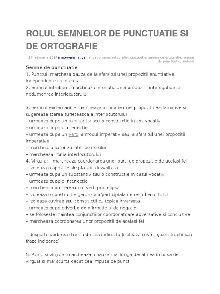 Rolul Semnelor De Punctuatie Si De Ortografie Temalaromana Ro