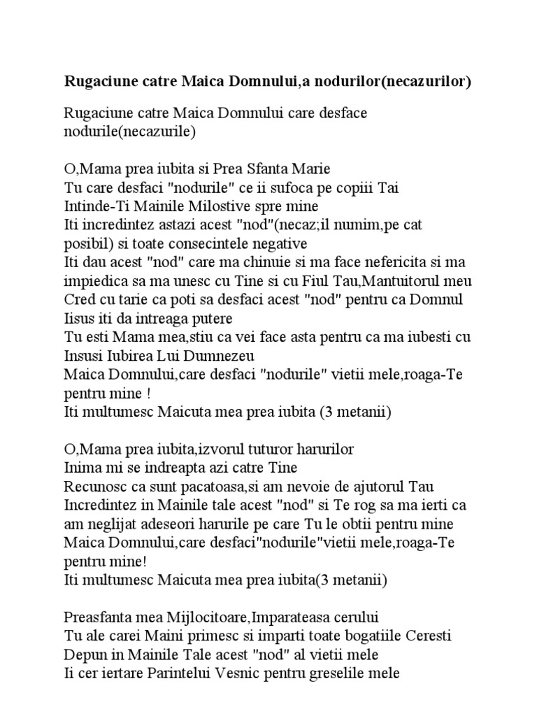 Rugaciune Catre Maica Domnului A Nodurilor Necazurilor