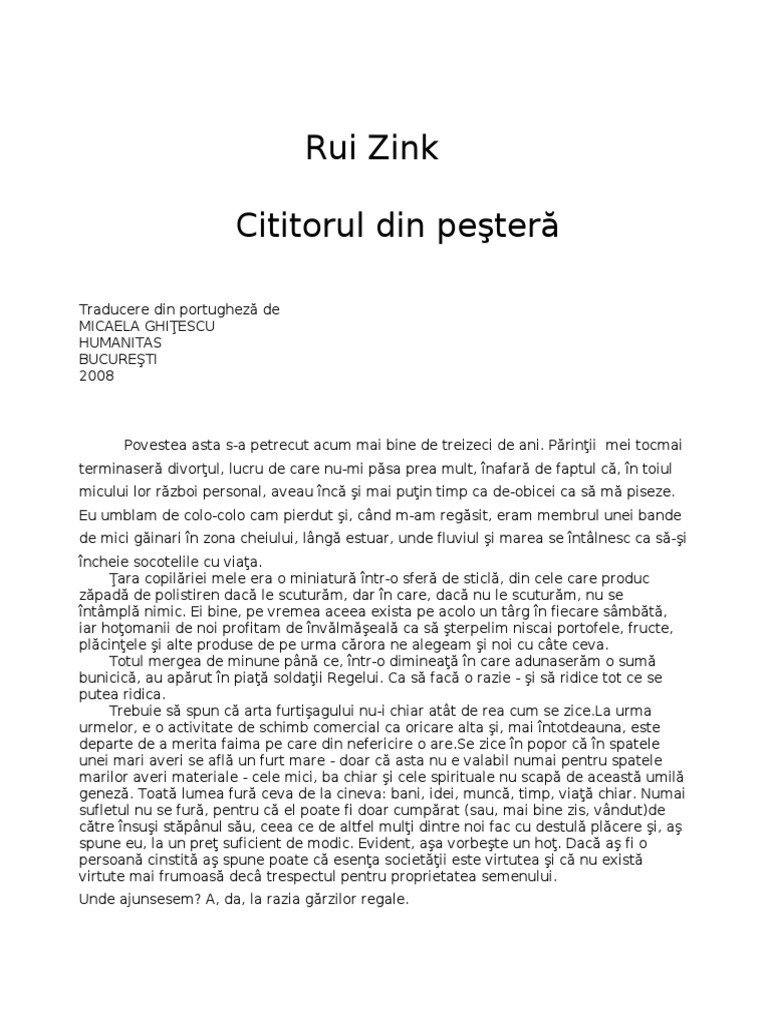 Cititorul Din Peșteră De Rui Zink Filiala Maramureș