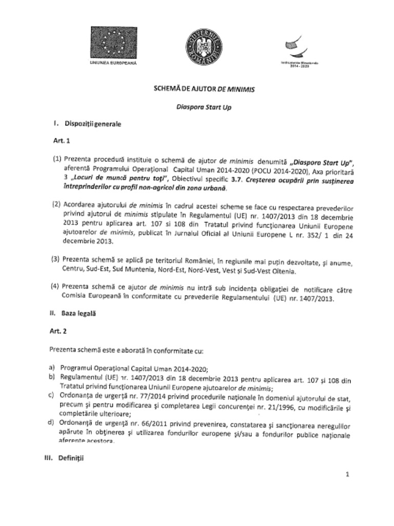 Schema De Ajutor De Minimis Prevăzută In Cadrul Programului Start Up Nation