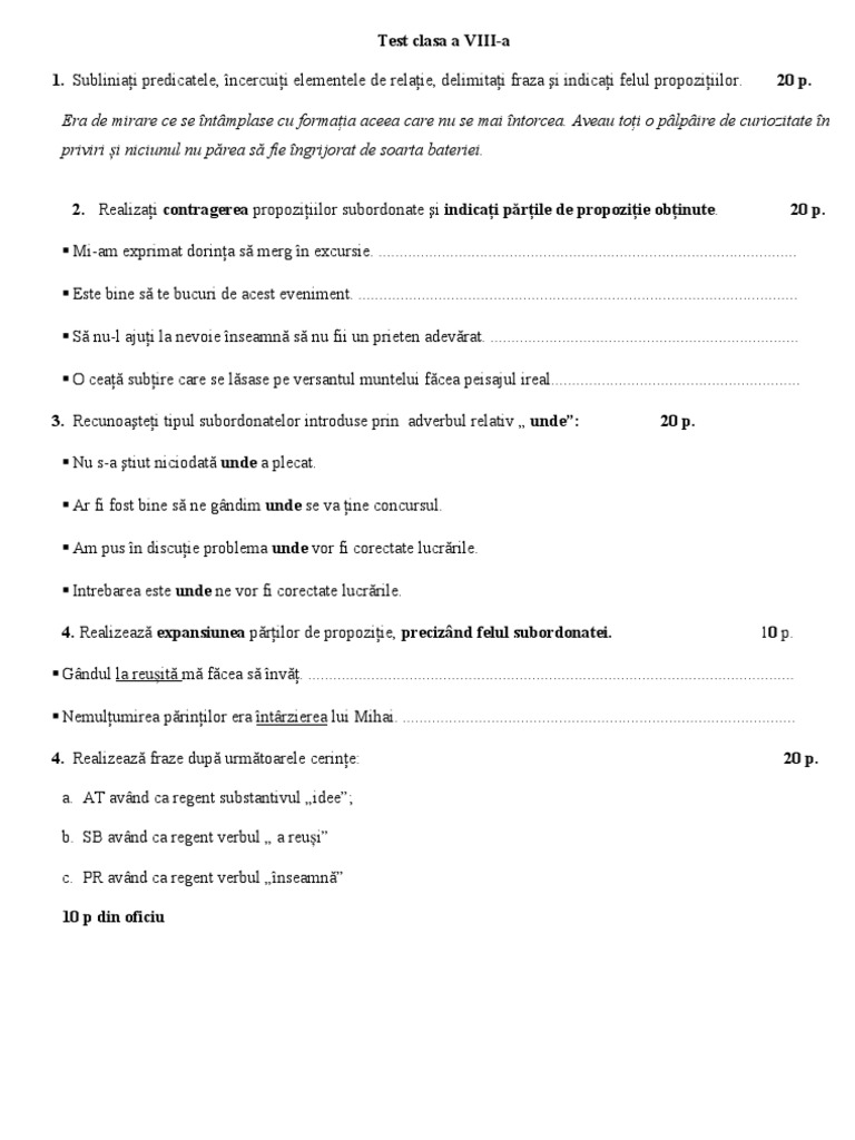 Sintaxa Frazei Exerciții Pentru Clasa A Opta E N 2020