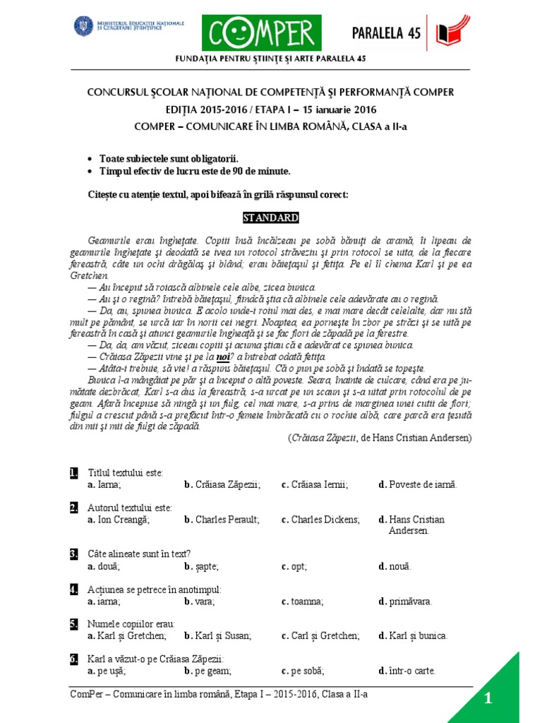 Subiecte Romana Comper 2019 Emoţii Pentru Elevi Bareme Romana Comper 2019 Etapa I Romaniatv Net Mobi