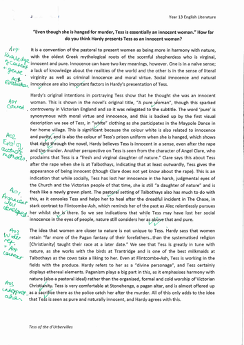 Exemplar Essays Tess Of The D Urbervilles Teaching Resources