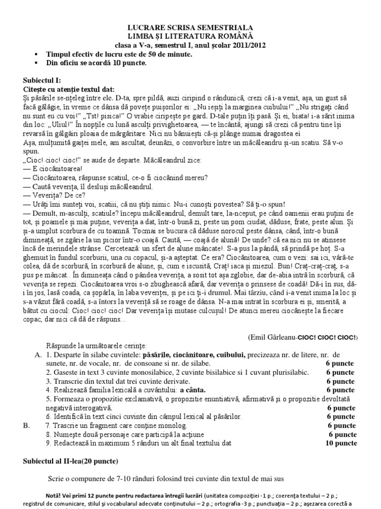 Model De Teza La Limba Romana Clasa 6 Semestrul 1 Pdf Document