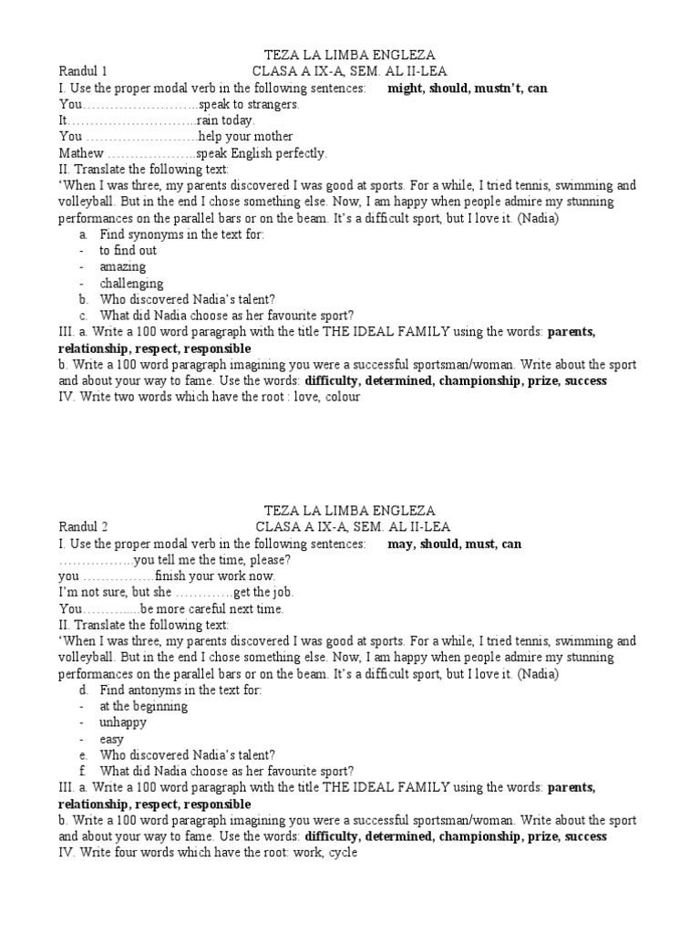 Teza Limba Romana Clasa A Ix A Aniela30 28 02 2011 Person Personalized Items